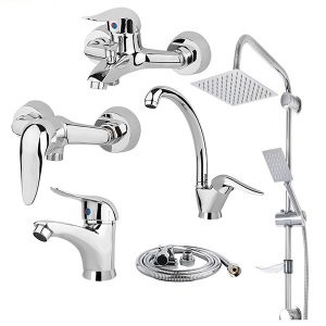 6عدد شامل ، شیر حمام ، شیر روشویی ، شیر توالت، شیر ظرفشویی، دوش حمام شلنگ توالت |