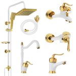 ست شیرآلات تیدومکث مدل هلنا سفید طلایی کد 800 مجموعه 6عددی