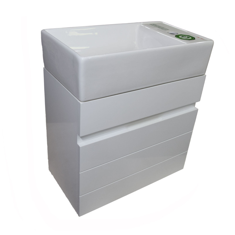 کابینت این محصول از پی وی سی فشرده ساخته شده و مقاوم در برابر رطوبت و اب میباشد که قابلیت استفاده در سرویس بهداشتی و حمام را فراهم اورده و به دلیل ابعاد کوچک ان برای سرویس بهداشتی هایی که فضای کافی ندارند بسیار مناسب باشد