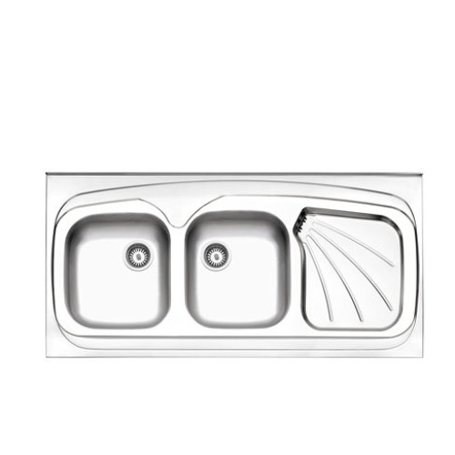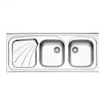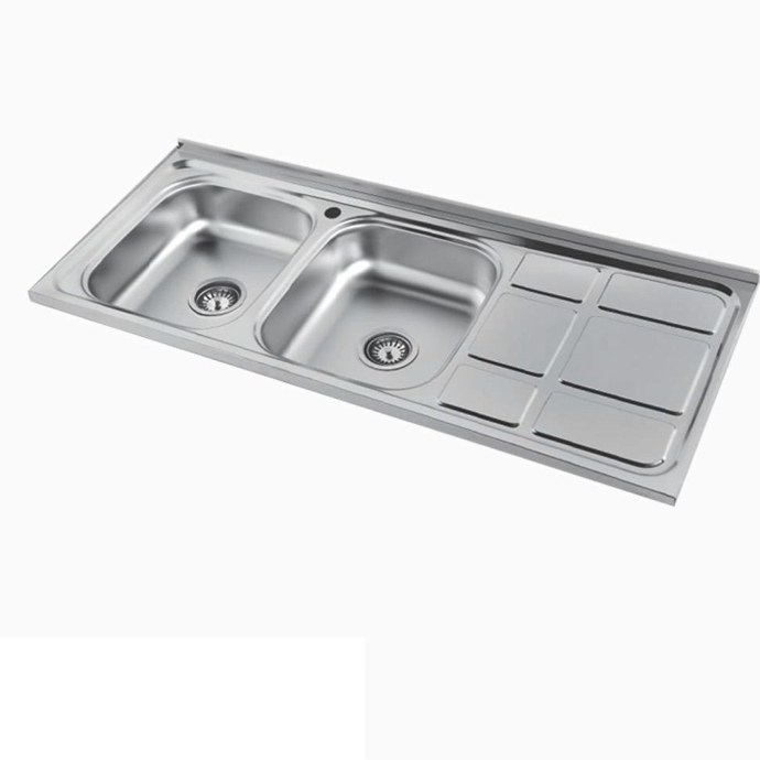 ضخامت ورق 0.7 میلی متر، دو لگن در کنار هم ،موجود در دو سمت راست و چپ، و طول 120 و عرض 50 سانتی متر است.بهتر است بدانید عرض ابعاد گروه سینک های روکار معمولا با عرض 60 سانتی متر تولید میشوند و عرض 50 سانتی متری این محصول از ابعاد نادر در گروه روکار است.