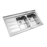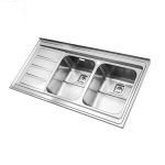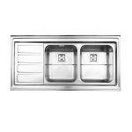 این سینک دارای عمق 20.5 سانتی متر، ظرفیت 56 لیتر، ضخامت ورق 0.8میلی متر، طول 120 و عرض 60 سانتی متر و دارای دو لگن و یک سینی با طرح فانتزی است